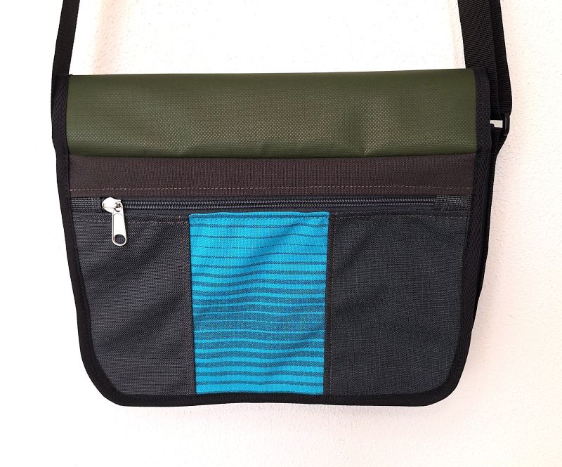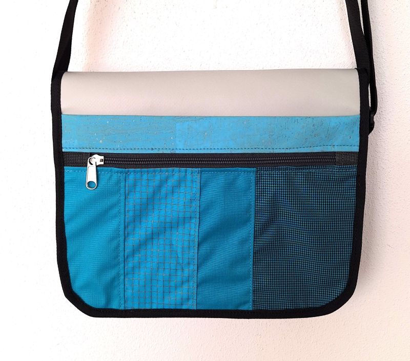 - Reißverschlussfach außen, Klettfach innen, Schlaufen z.B. für Stifte, Schlüsselanhänger, Reißverschlussfach innen, Verschluss mit Klett.