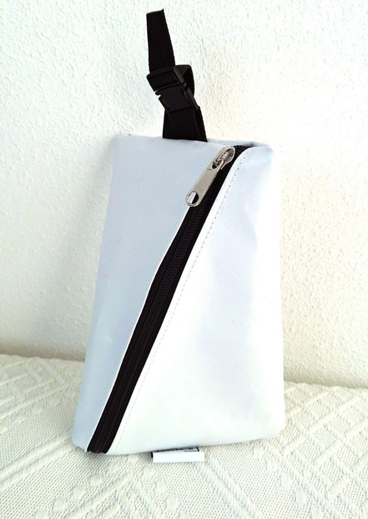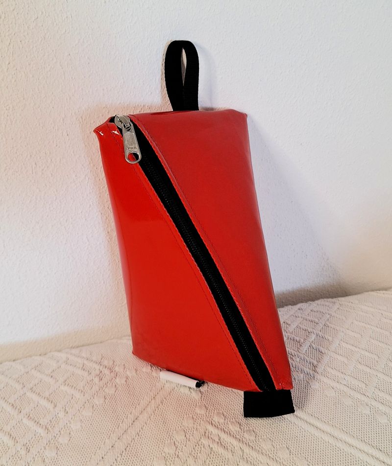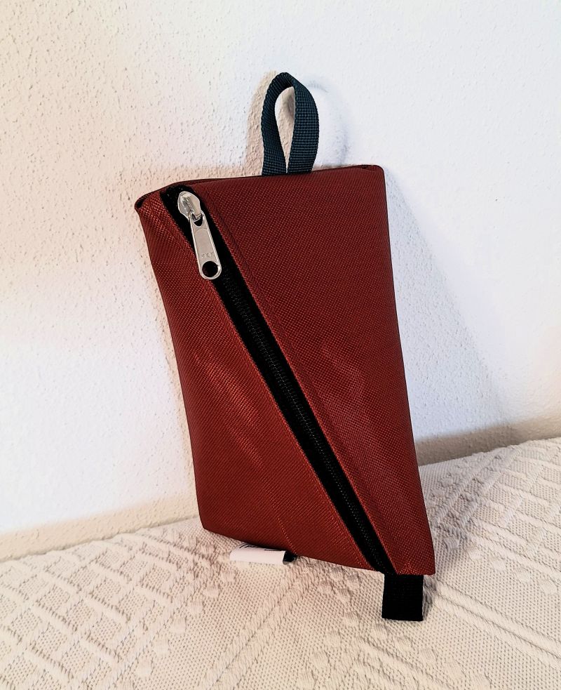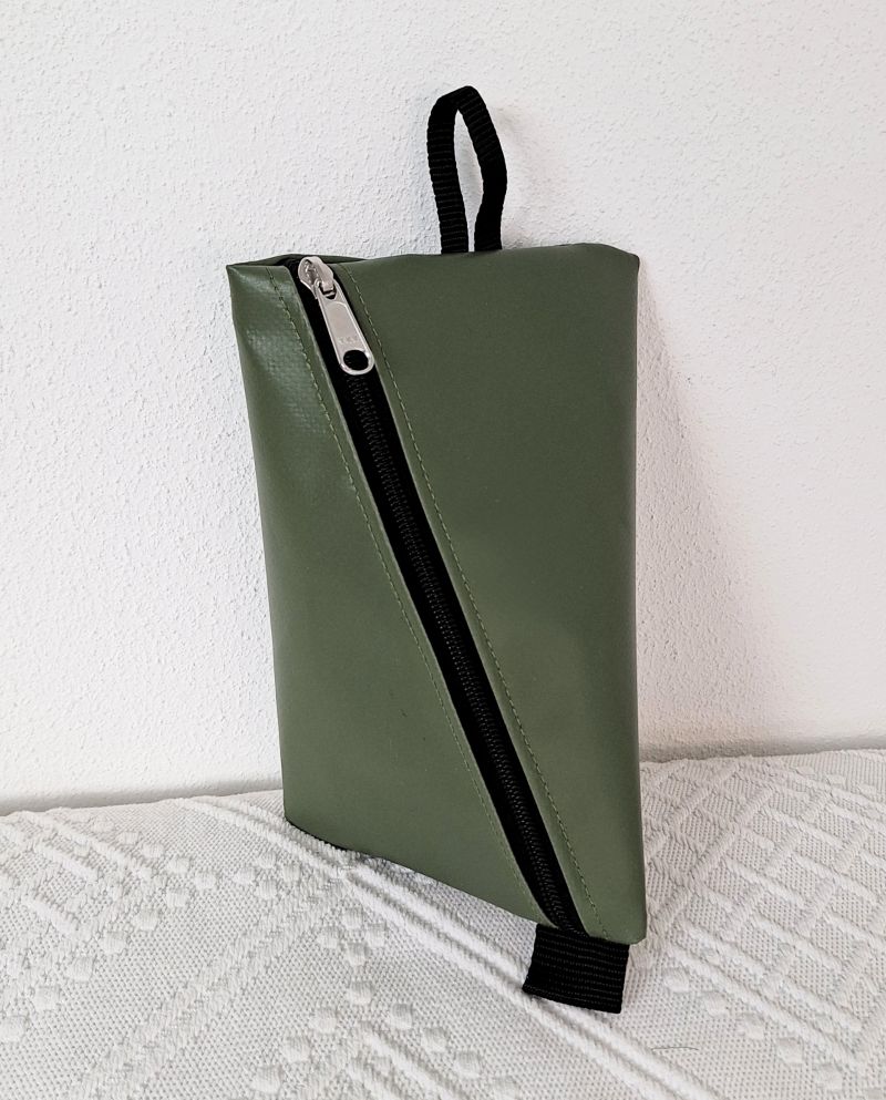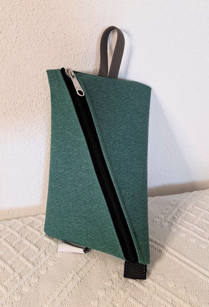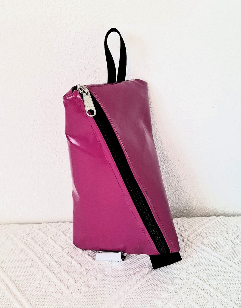 - Das Utensilo ist so gemacht das es eine Drehung hat damit schön Platz entsteht. Es kann auch als kleiner Kulturbeutel verwendet werden. Innen kann man alles auswischen.