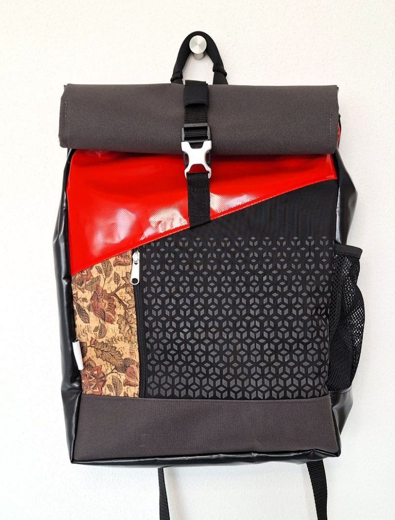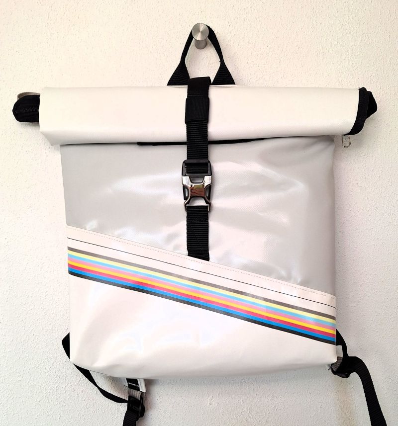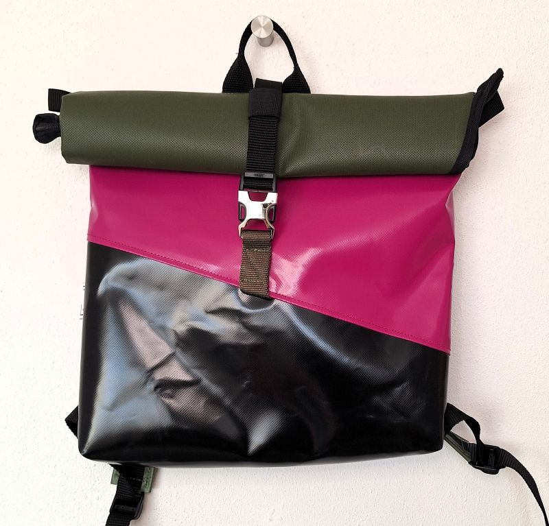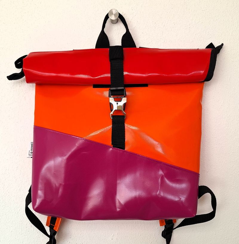 alle Wickelrucksäcke klein im Lager. Jedes Unikat 85,- Euro